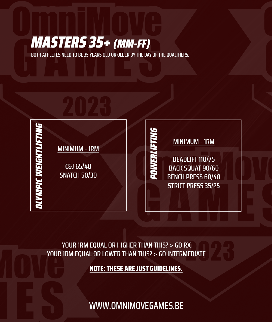 You need to be 35 or older by the time of the Finals (June 25 - 26). Same goes for the Masters 45+ division.